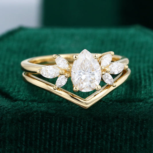 1.5 CT Pear Cluster Moissanite Bridal Set